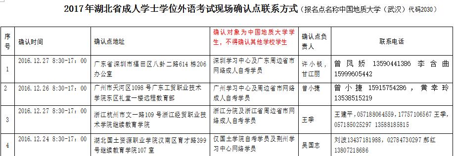 2017年中國(guó)地質(zhì)大學(xué)成人本科學(xué)位英語(yǔ)考試現(xiàn)場(chǎng)確認(rèn)安排表