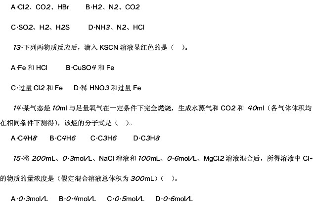 - 2012年湖北成人高考高起點(diǎn)物理化學(xué)真題及答案
