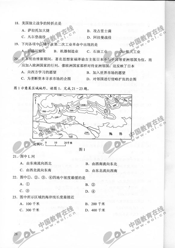 2011年湖北成人高考真起點史地試題