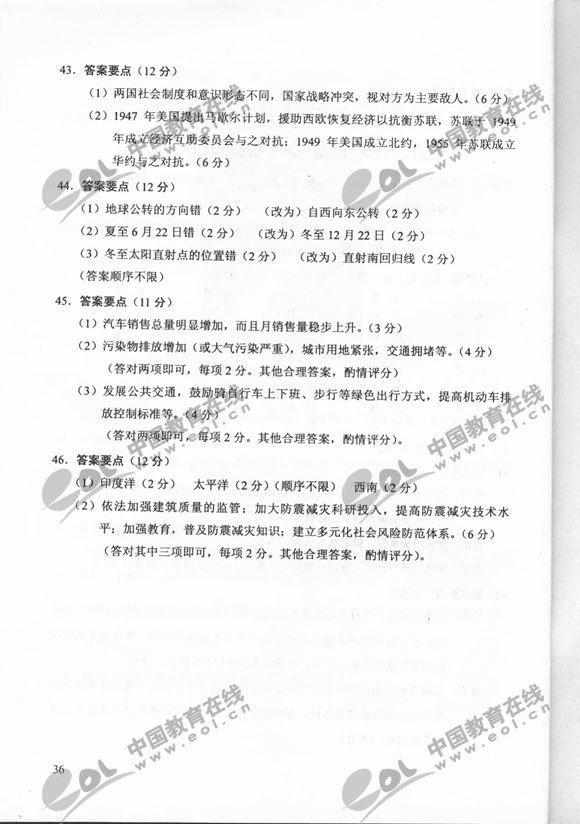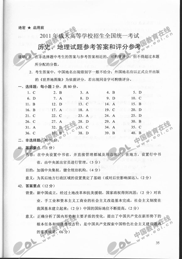 2011年湖北成人高考真起點史地真題