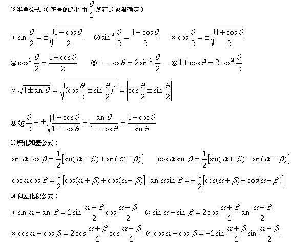 "2012年成人高考高起點(diǎn)數(shù)學(xué)三角公式匯總" 相關(guān)文章推薦