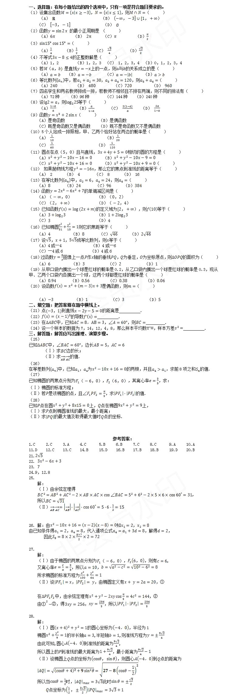 - 2006年湖北成人高考高起點(diǎn)數(shù)學(xué)(文)真題及答案
