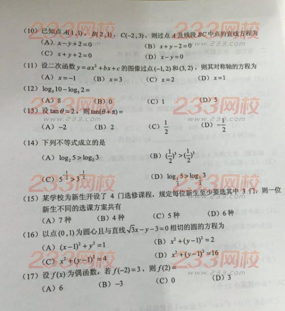 - 2017年成人高考高起點(diǎn)數(shù)學(xué)(文)考試真題及答案