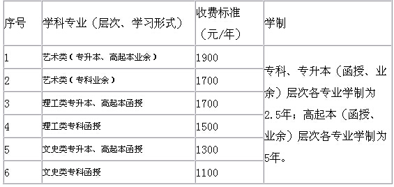 二、成人函授招生各專業(yè)收費(fèi)標(biāo)準(zhǔn)與學(xué)制