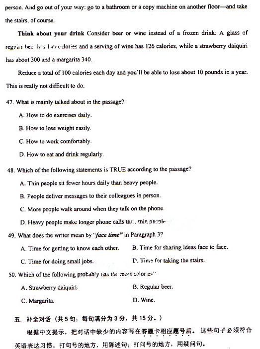 - 2014年湖北成人高考高起點(diǎn)英語考試真題(部分)