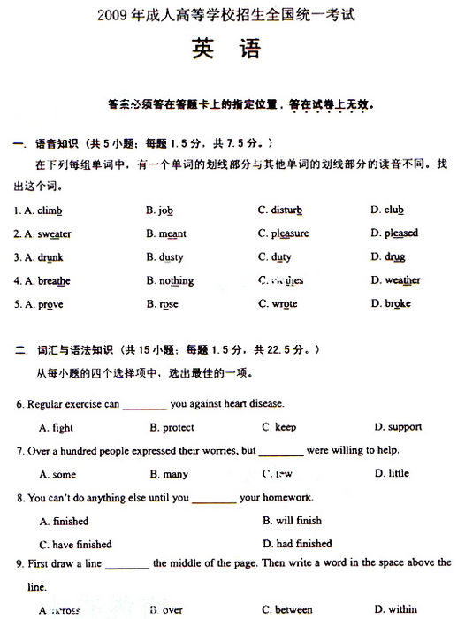 "2009年湖北成考高起點(diǎn)英語真題及參考答案" 相關(guān)文章推薦