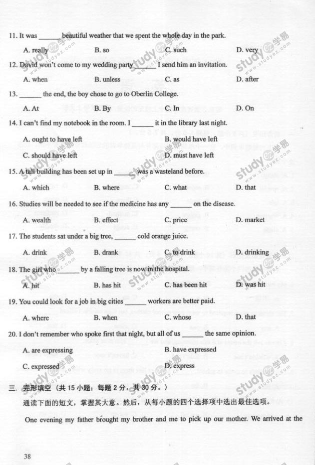 "2011年成人高考高起點英語試題" 相關(guān)文章推薦