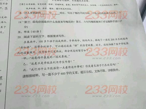 2015年湖北成人高考高起點語文試題(網友版1)