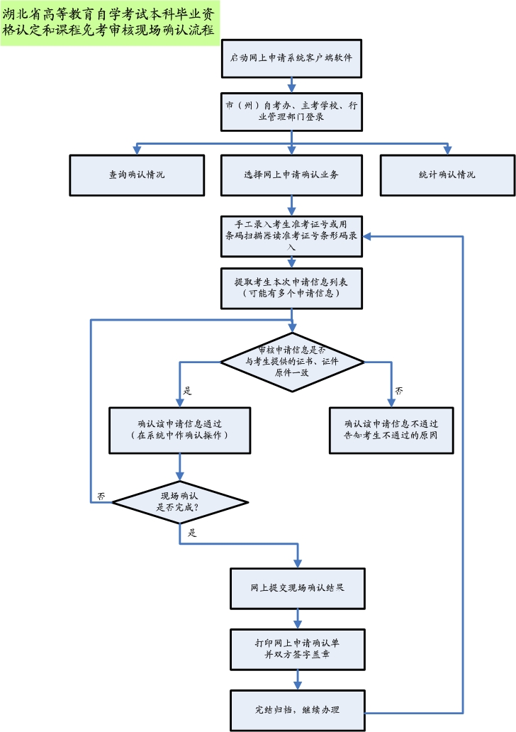 2015年湖北自考本科畢業(yè)資格認(rèn)定和課程免考考生現(xiàn)場確認(rèn)流程