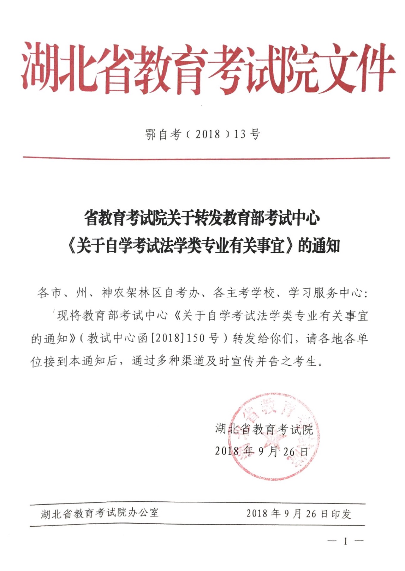 2018年關(guān)于湖北自考法學(xué)類專業(yè)有關(guān)事宜通知