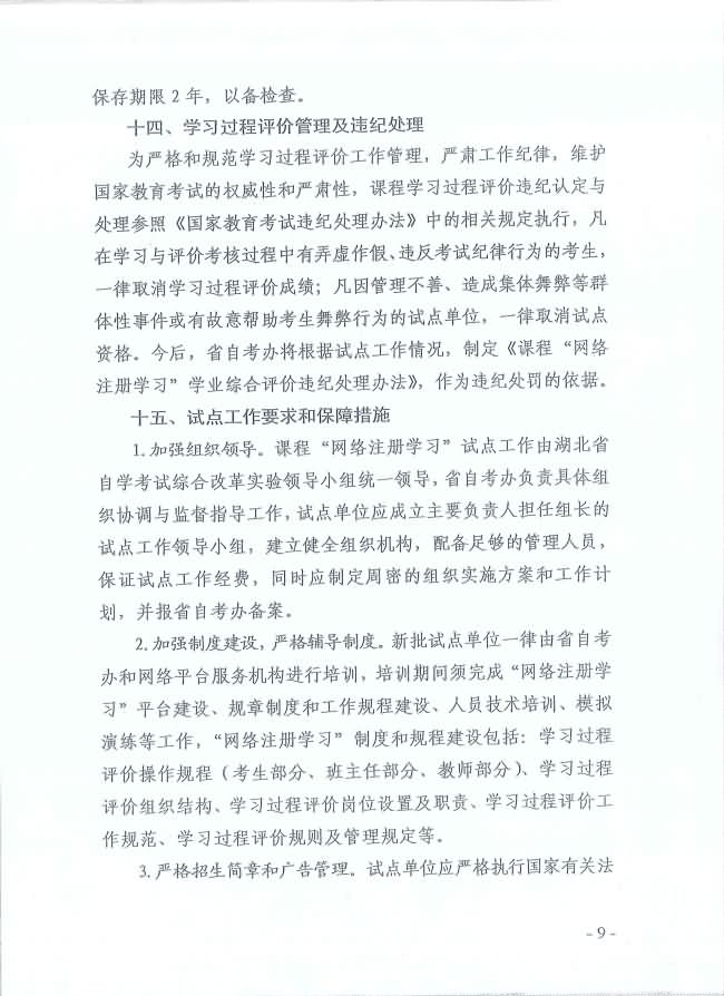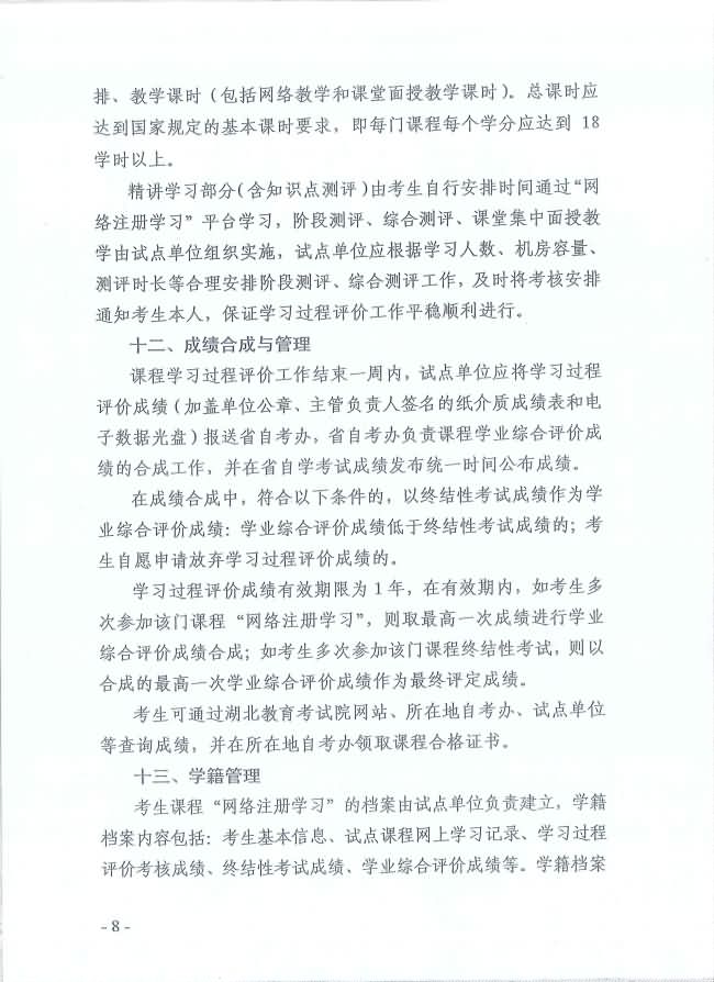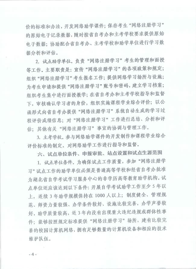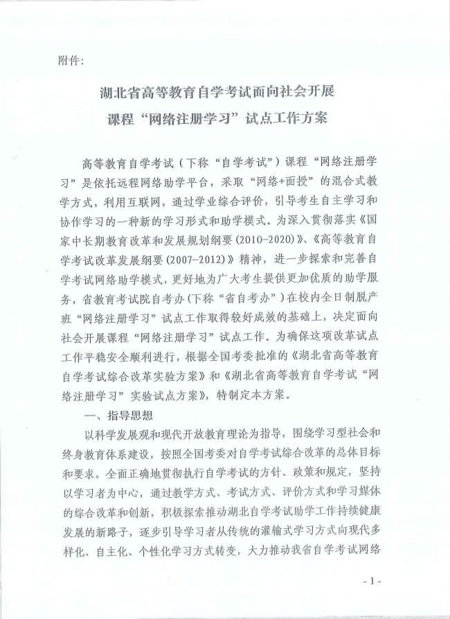 關(guān)于印發(fā)《湖北省高等教育自學考試面向社會開展課程“網(wǎng)絡注冊學習”試點工作方案》的通知
