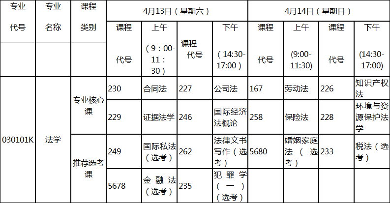 2019年4月自考法學(xué)(專升本)考試科目