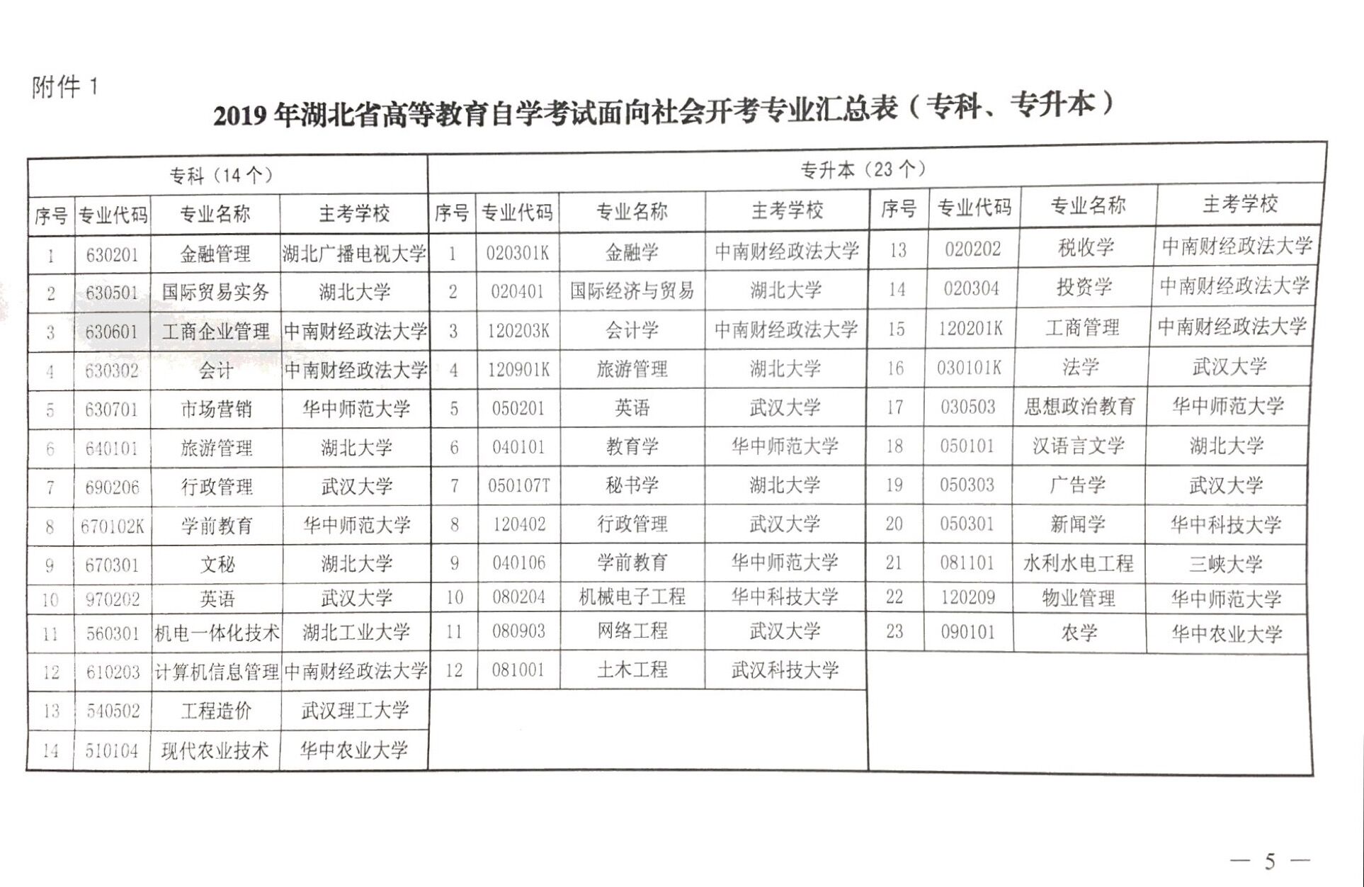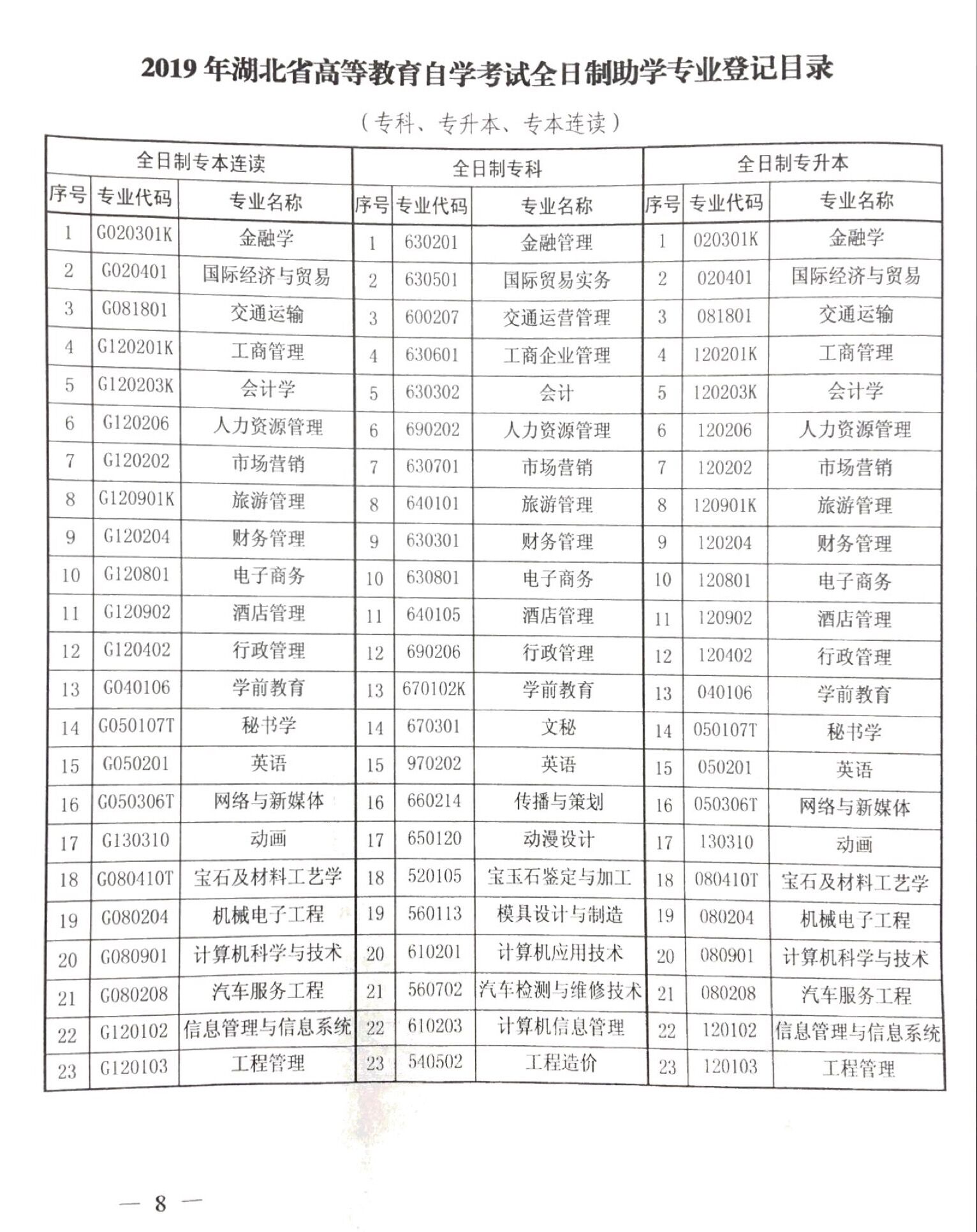 關(guān)于公布2019年湖北省自考新生注冊(cè)專業(yè)目錄的通知