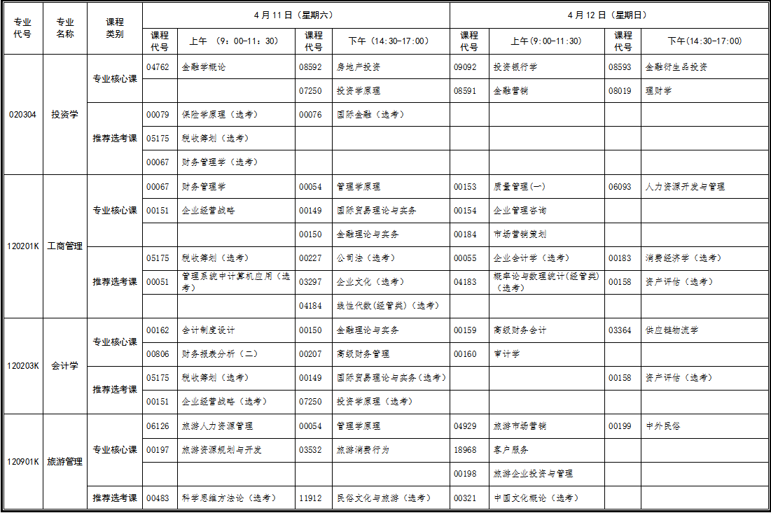 2020年4月湖北自考專升本面向社會(huì)開考專業(yè)考試課程時(shí)間安排