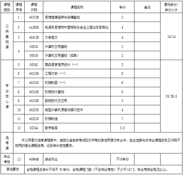 湖北自考專科機(jī)電一體化技術(shù)專業(yè)考試科目