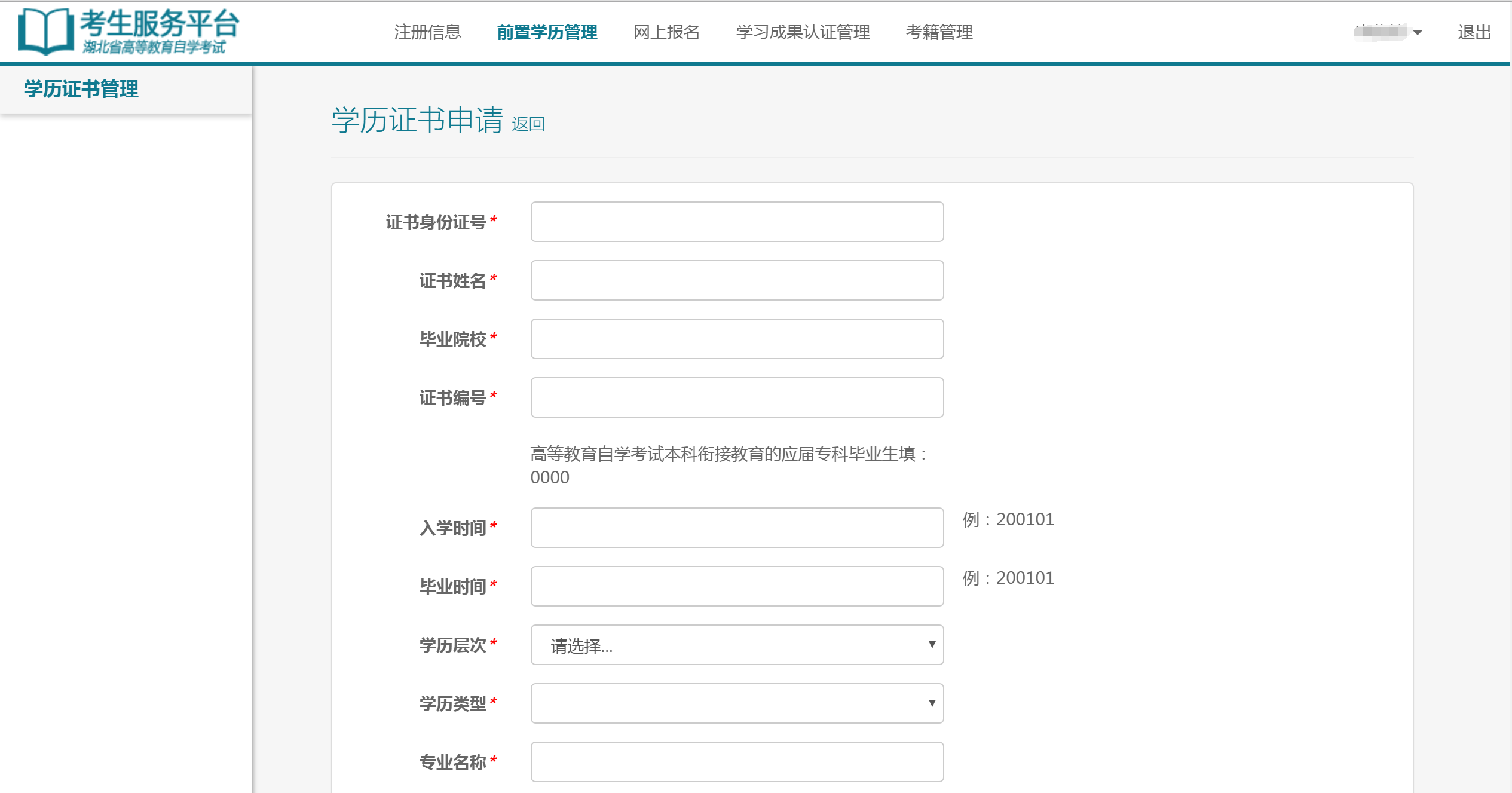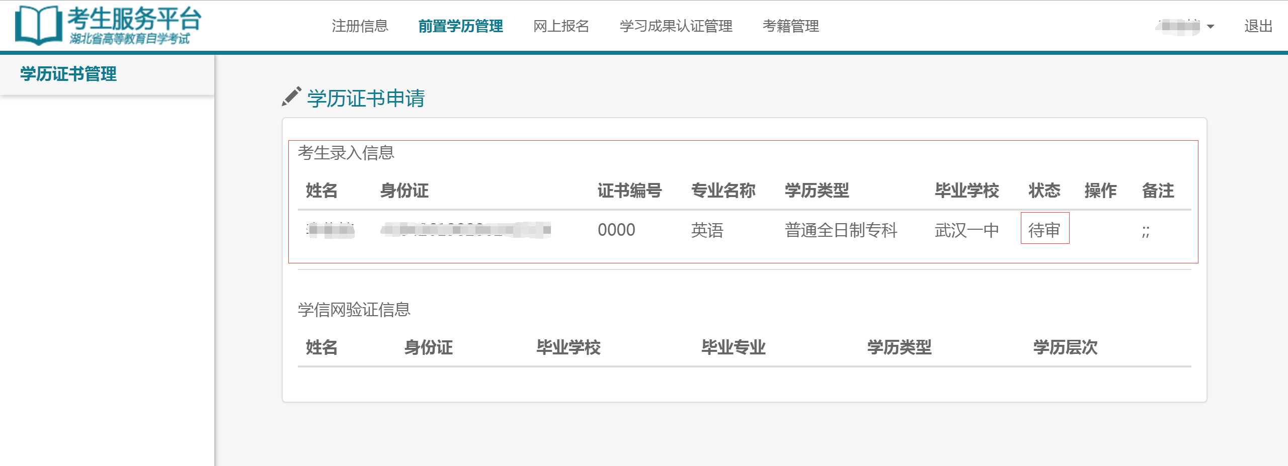 自考前置學(xué)歷管理在考生平臺(tái)的操作流程