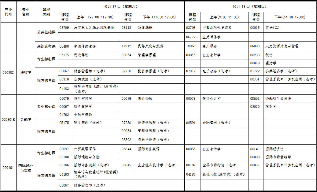 2020年10月湖北自考面向社會(huì)開(kāi)考新課改專(zhuān)業(yè)統(tǒng)考課程考試時(shí)間安排表(本科)