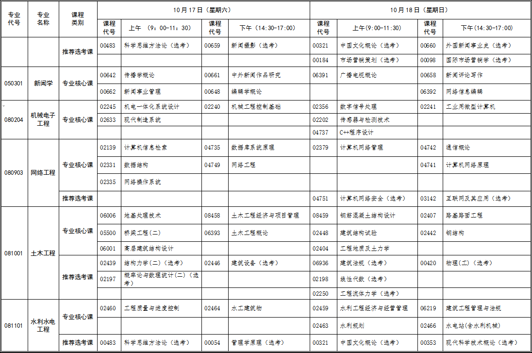 2020年10月湖北自考專(zhuān)科新課改專(zhuān)業(yè)考試時(shí)間安排表