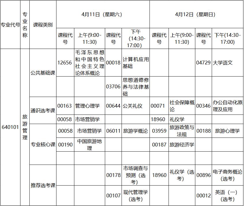 2020年4月湖北自考專科旅游管理專業(yè)考試計劃: