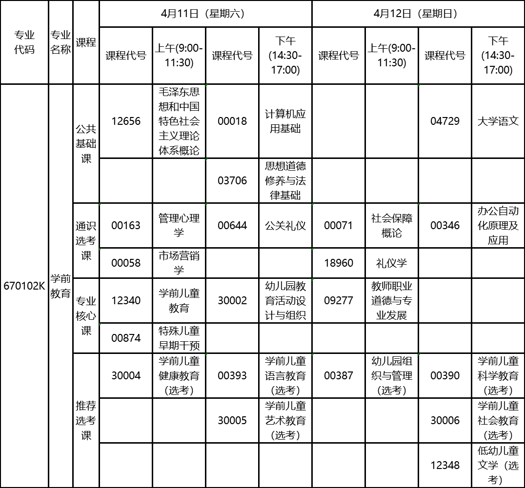 2020年4月湖北自考專科學(xué)前教育專業(yè)考試計(jì)劃: