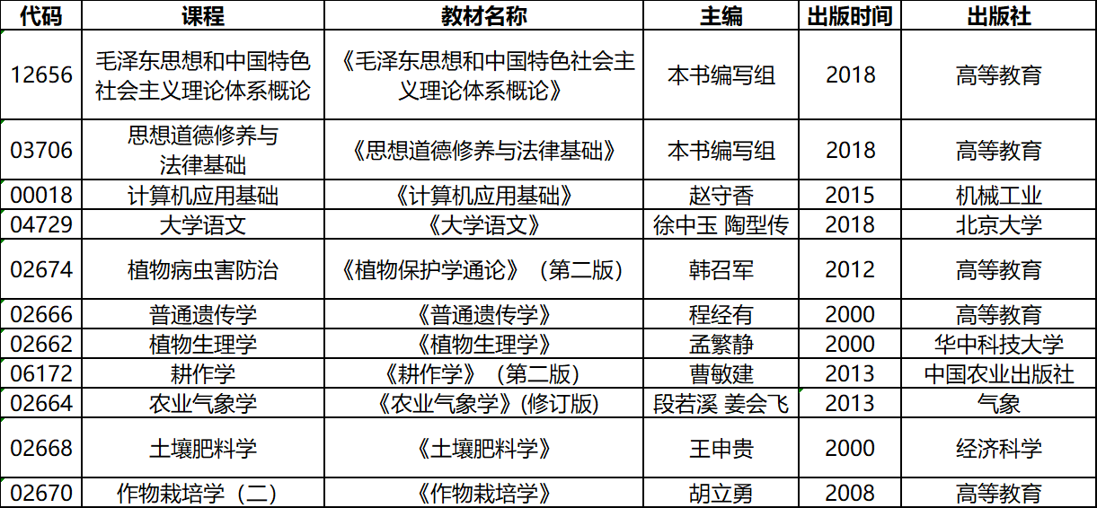 2020年4月湖北自考現(xiàn)代農(nóng)業(yè)技術專業(yè)考試時間和考試教材(專科)