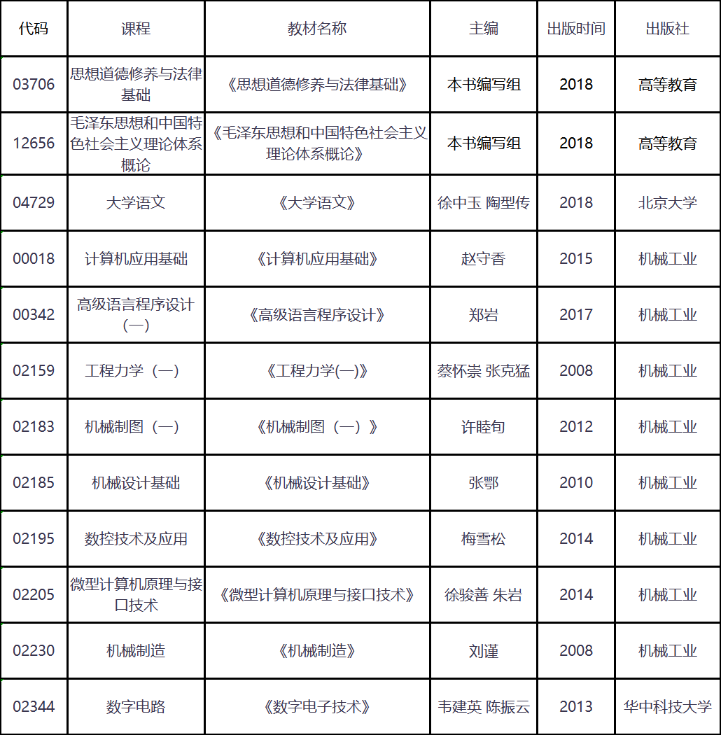 2020年4月湖北自考機(jī)電一體化技術(shù)專業(yè)考試時間和考試教材(專科)