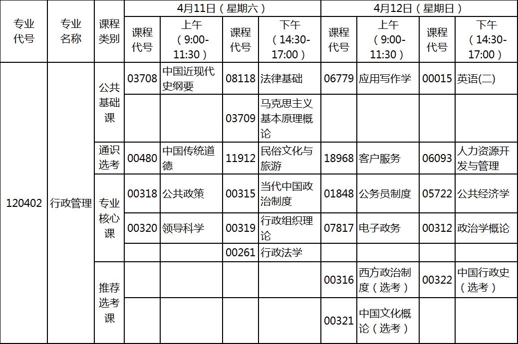 2020年4月湖北自考專升本行政管理專業(yè)考試計劃: