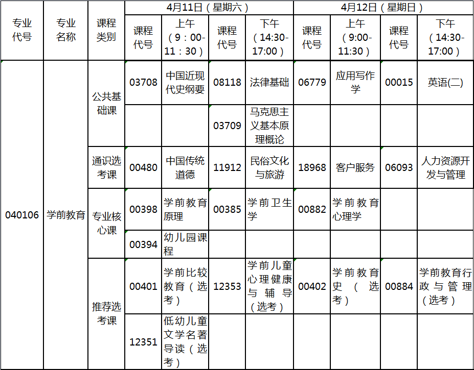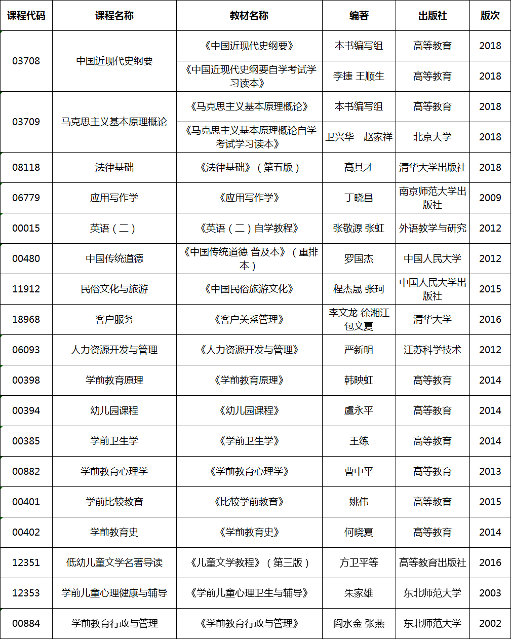 2020年4月湖北自考學(xué)前教育專業(yè)考試時間和考試教材(專升本)