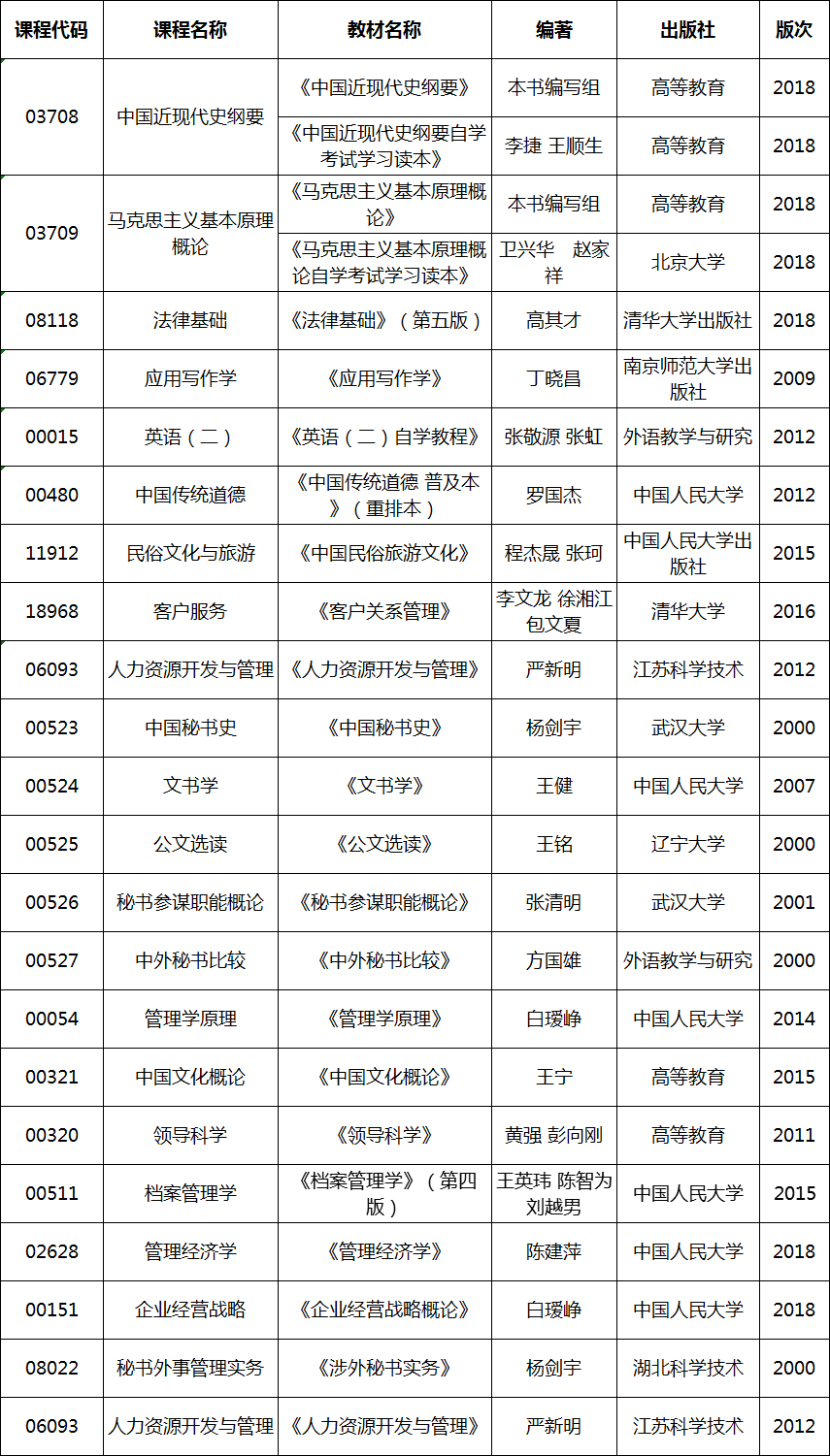 2020年4月湖北自考秘書學(xué)專業(yè)考試時間和考試教材(專升本)