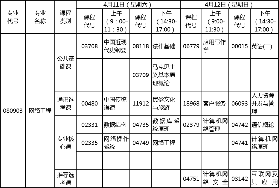 2020年4月湖北自考專升本網(wǎng)絡(luò)工程專業(yè)考試計劃: