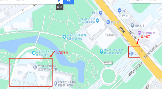 特別提醒:考生入校一定從武漢理工大學(xué)南湖校區(qū)南苑北大門進入!由于南湖校區(qū)南苑占地范圍廣,進出校門較多,其他校門距離考點教學(xué)樓較遠,易出現(xiàn)校內(nèi)行走時間長岔道多等情況,可能導(dǎo)致考生入場時間延誤問題,影響正常參考,望考生謹慎而行!為維護考場正常秩序,考試期間校園實行交通管制,不允許外來車輛進校,所有考生一律步行入校參加考試!