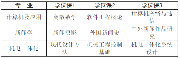 各專業(yè)的學(xué)位課程見下表: