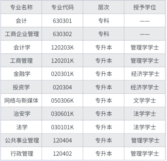 | 專升本 | 金融學(xué) | 中國近現(xiàn)代史綱要、馬克思主義基本原理概論、英語(二)、應(yīng)用寫作學(xué)、法律基礎(chǔ)、財務(wù)管理學(xué)、國際金融、金 融學(xué)概論、銀行會計學(xué)、保險學(xué)原理、理財學(xué)、金融衍生品投資等。 | |||