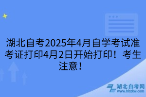 湖北自考2025年4月自學(xué)考試準(zhǔn)考證打印4月2日開始打印!考生注意!