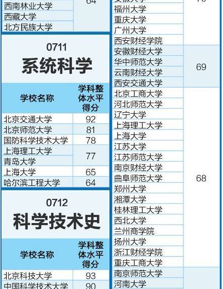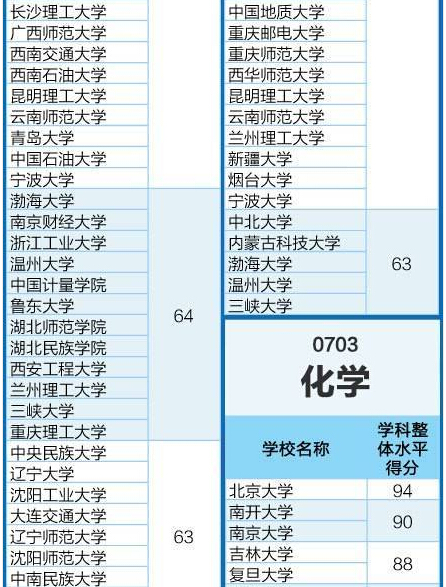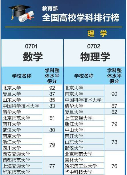 教育部:全國高校理學類學科排行榜