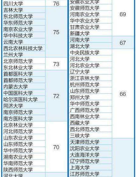 以下為全國高校理學類一級學科排行榜