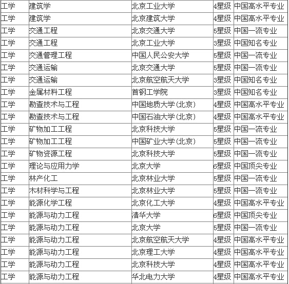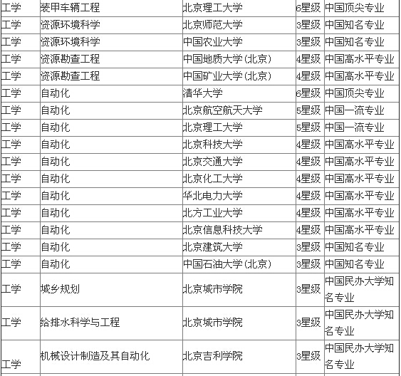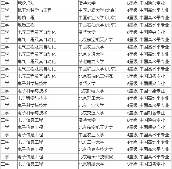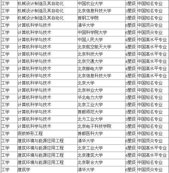 2015年北京市大學(xué)三星級(jí)以上專業(yè)排行榜