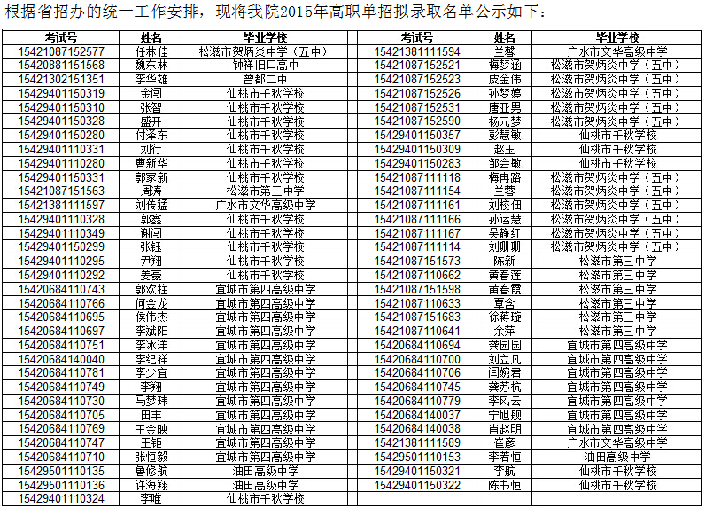 "2015年武漢民政職業(yè)學(xué)院高職單獨(dú)招生擬錄取名單" 相關(guān)文章推薦