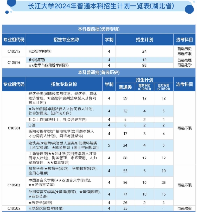 "荊楚優(yōu)師計劃”為專項招生計劃,安排在本科提前批次錄取,實行單列志愿、單獨劃線。在志愿填報時,有意愿的考生需在本科提前批單設志愿中填報長江大學"荊楚優(yōu)師計劃”專業(yè)志愿。