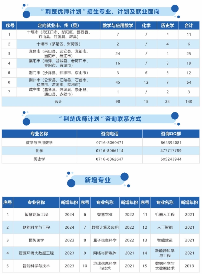 招生計劃140人,“荊楚優(yōu)師計劃”師范生在四年修讀年限內(nèi),免除學費、免繳住宿費、并補助生活費。本科畢業(yè)后到定向縣域中小學履約任教服務不少于6年,入編入崗。