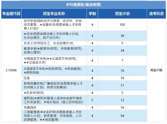 2024年,學校招生計劃8871人,較2023年增加270人,其中在湖北招生5416人,招生規(guī)模湖北省屬高校第一,學校共有66個專業(yè)(類)面向全國31個省、自治區(qū)、直轄市招生。