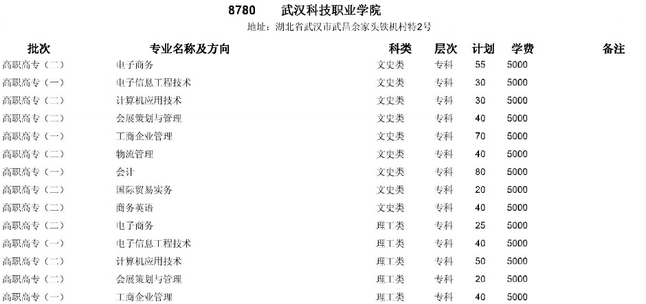 武漢科技職業(yè)學(xué)院2014年在湖北省招生計劃