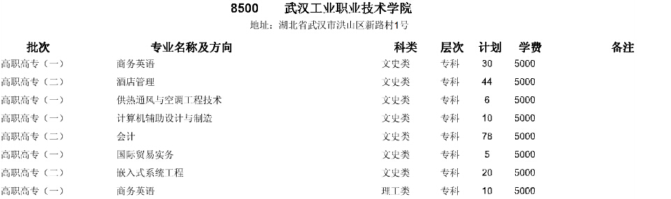 武漢工業(yè)職業(yè)技術學院2014年在湖北省招生計劃