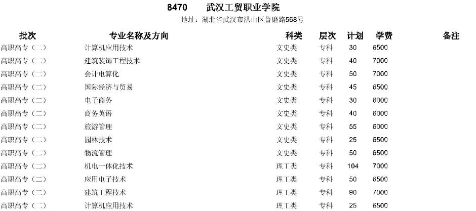 武漢工貿(mào)職業(yè)學(xué)院2014年在湖北省招生計(jì)劃