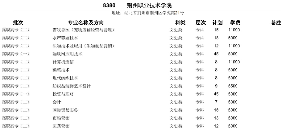 荊州職業(yè)技術(shù)學(xué)院2014年在湖北省招生計劃