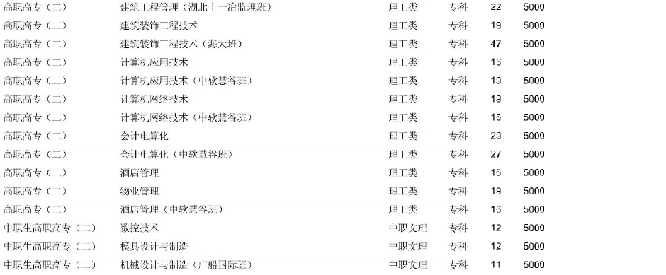 湖北工程職業(yè)學院2014年在湖北省招生計劃