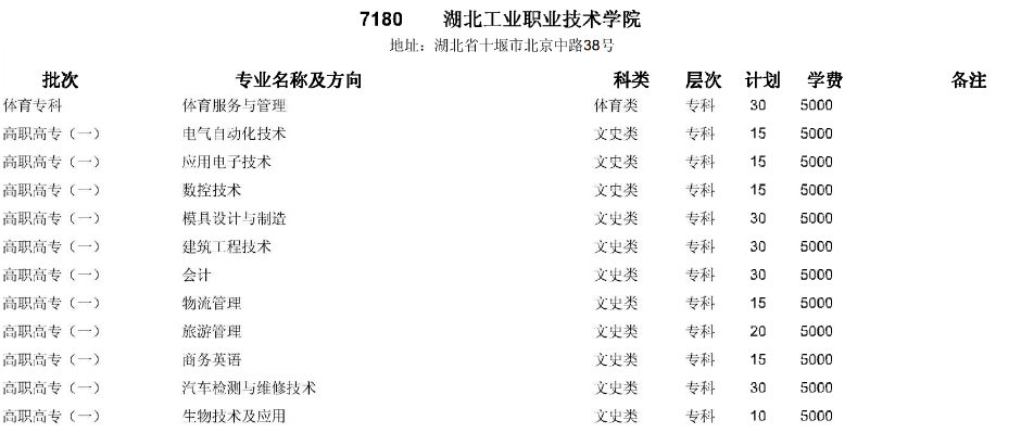 湖北工業(yè)職業(yè)技術學院2014年在湖北省招生計劃