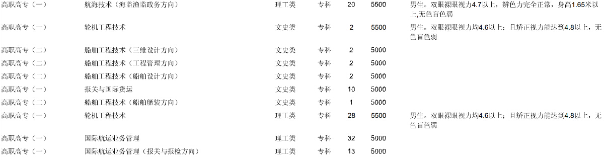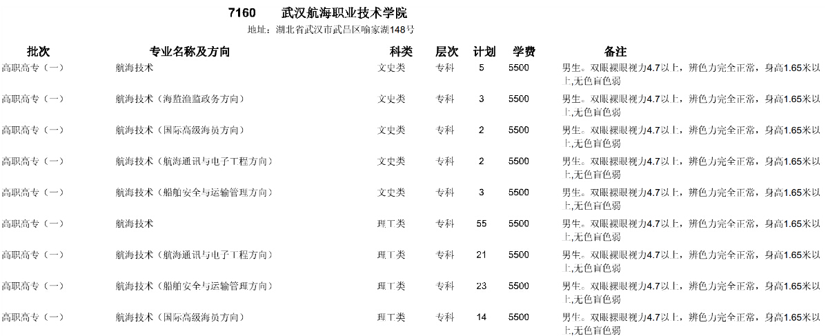 武漢航海職業(yè)技術學院2014年在湖北省招生計劃