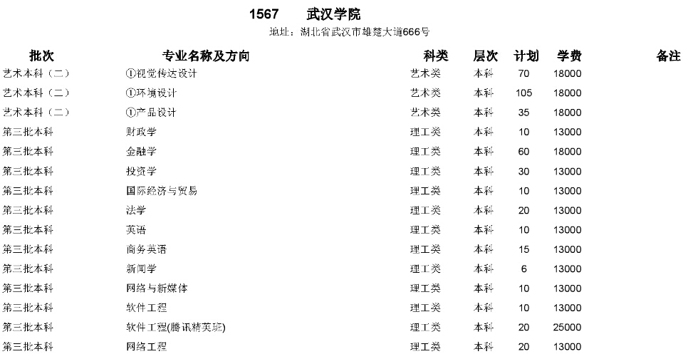 湖北高考網(wǎng)獲悉,2015年武漢學(xué)院在湖北省招生計(jì)劃如下: