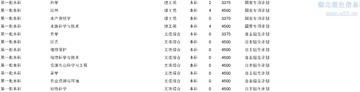湖北高考網(wǎng)獲悉,2015年華中農(nóng)業(yè)大學(xué)在湖北省招生計(jì)劃如下: